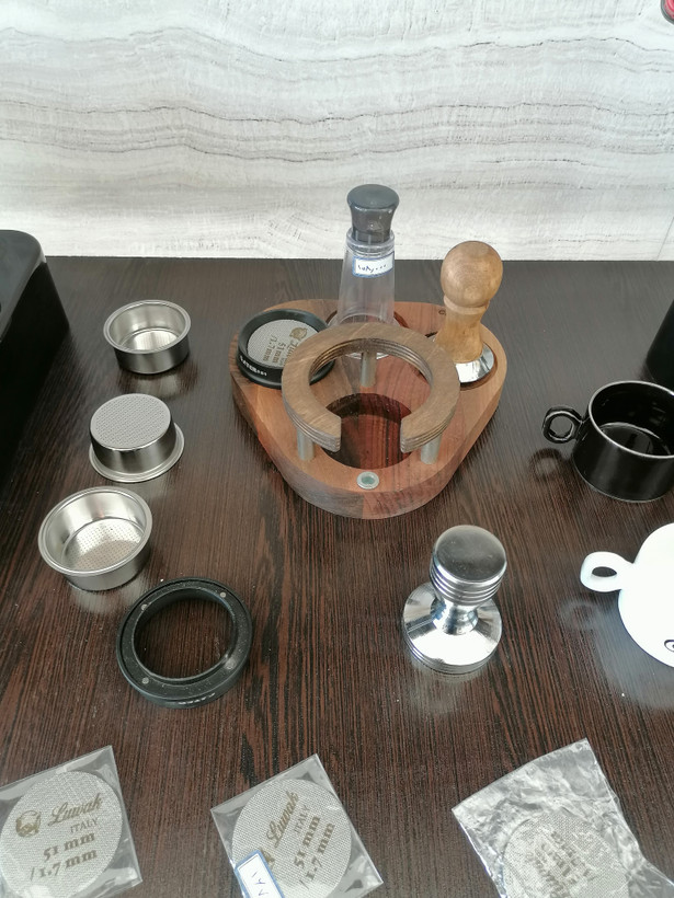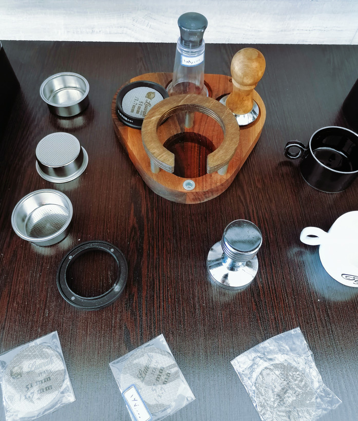 شامل: (تمپر فلزی 51، تمپر دسته چوبی51، فانل گتر سایز51، لولر گتر سایز51، نیدل لاکی آبنباتی، نیدل دسته چوبی گتر، فرچه تنظیف، پاک اسکرین51 لواک، جاکلیدی اکسسوری قهوه، استند قلبی لاکی51 و چوبی53، استند لاکی مربعی ناک باکس دار51، استند چوبی مستطیلی51، فنجان قهوه، فنجان و نعلبکی لاته خوری، بسکت تک و دوبل غیر تحت فشار 51، لیوان اسموتی شیشه ای روکش چرمی، پیچر 600میلی استیل و هفت رنگ)