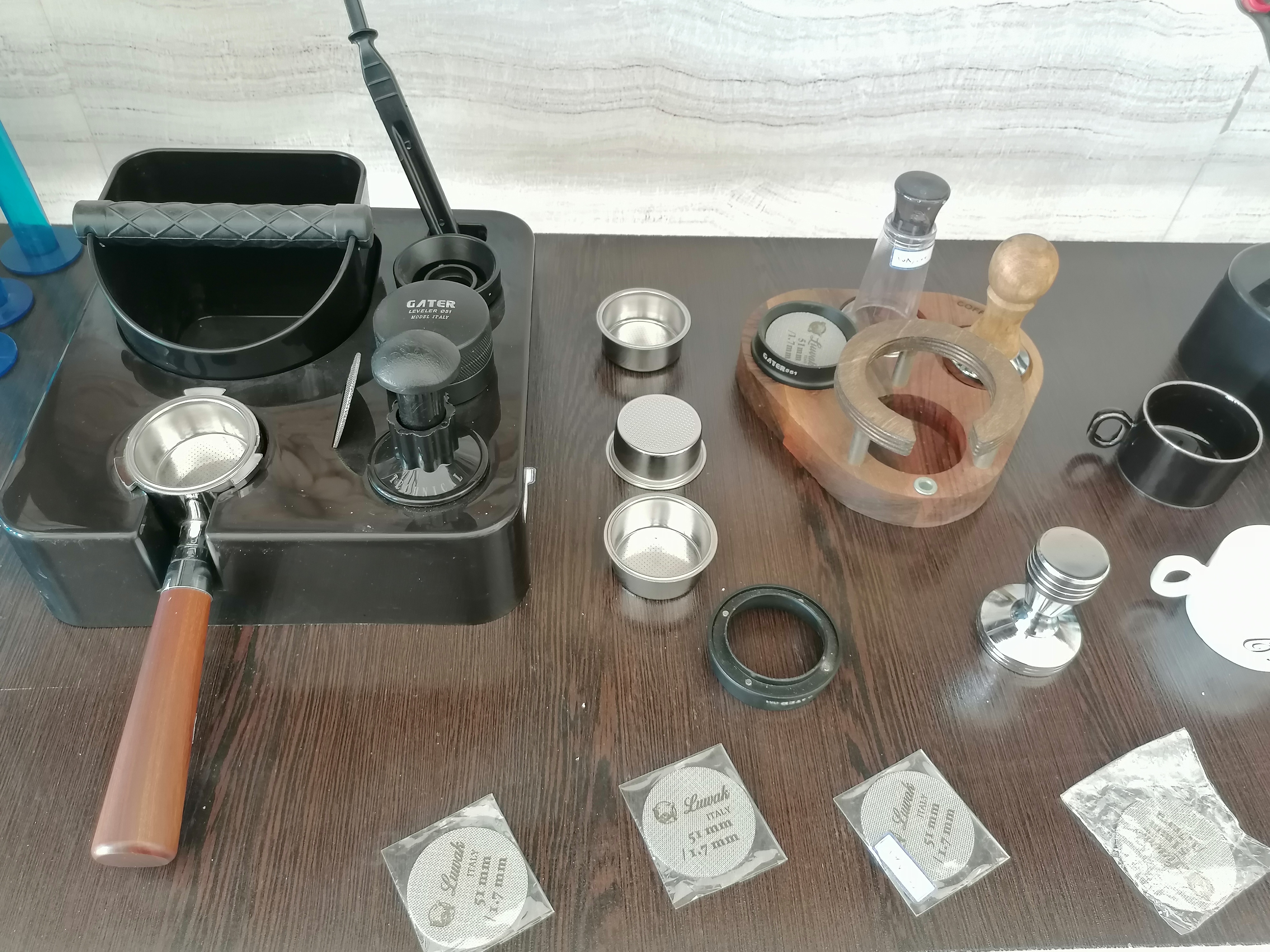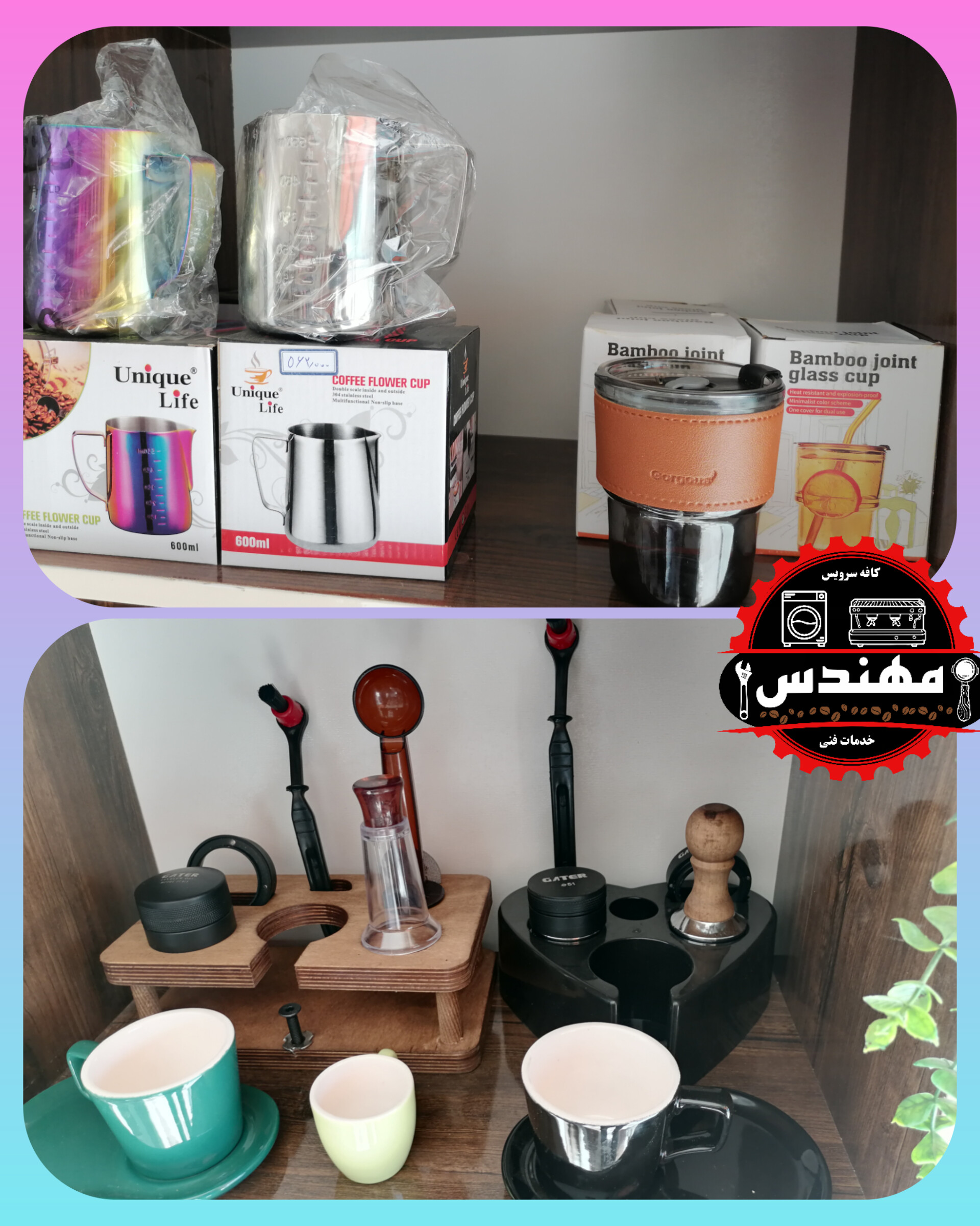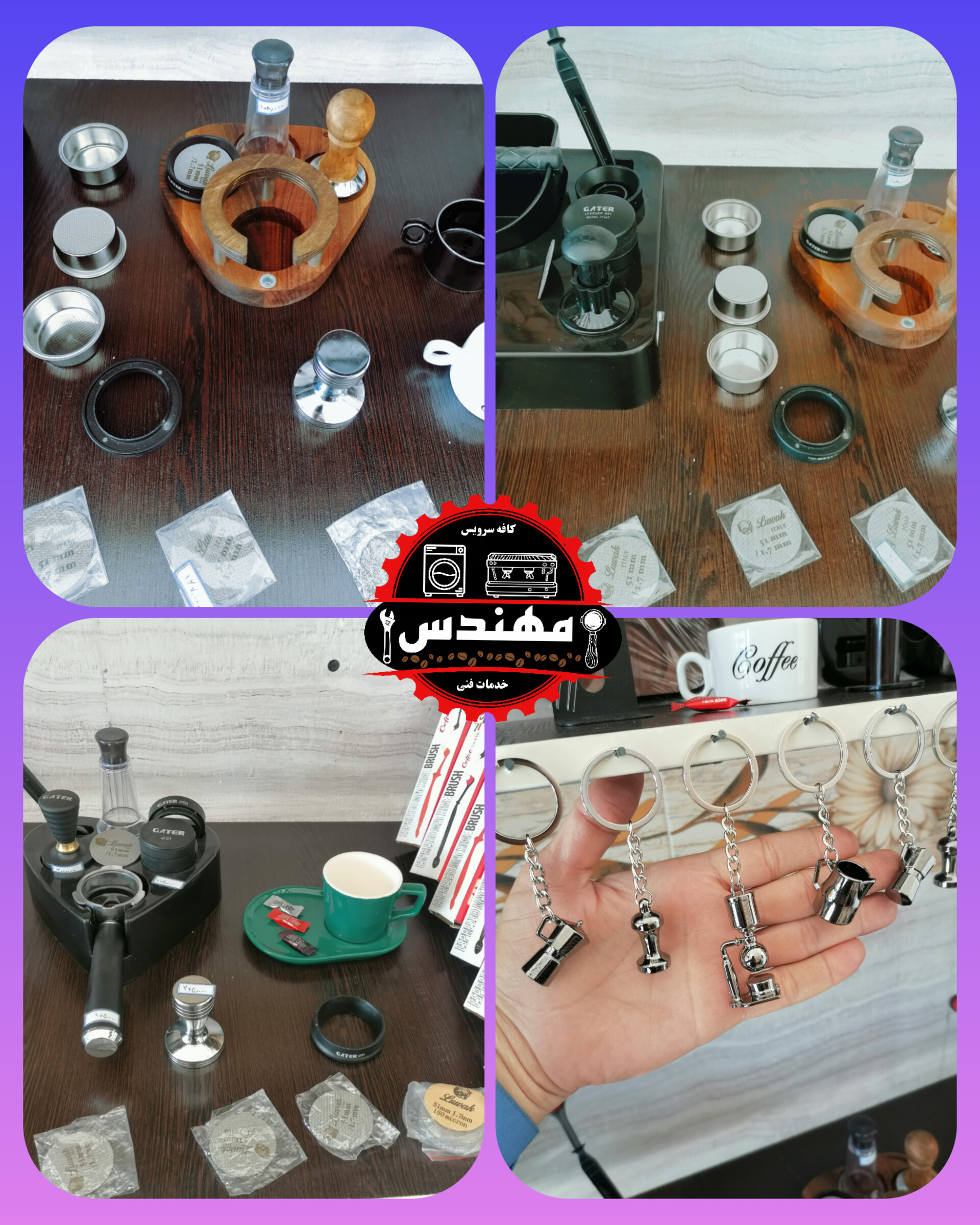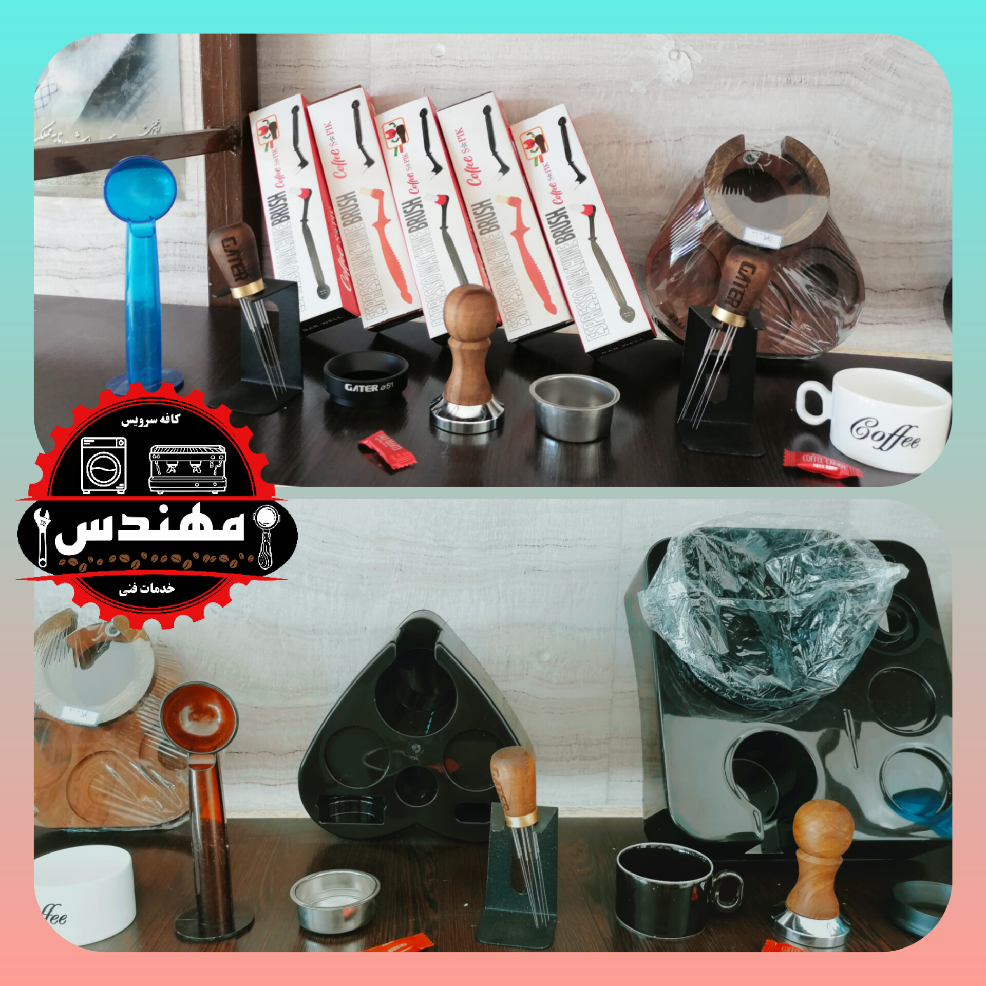 شامل: (تمپر فلزی 51، تمپر دسته چوبی51، فانل گتر سایز51، لولر گتر سایز51، نیدل لاکی آبنباتی، نیدل دسته چوبی گتر، فرچه تنظیف، پاک اسکرین51 لواک، جاکلیدی اکسسوری قهوه، استند قلبی لاکی51 و چوبی53، استند لاکی مربعی ناک باکس دار51، استند چوبی مستطیلی51، فنجان قهوه، فنجان و نعلبکی لاته خوری، بسکت تک و دوبل غیر تحت فشار 51، لیوان اسموتی شیشه ای روکش چرمی، پیچر 600میلی استیل و هفت رنگ)