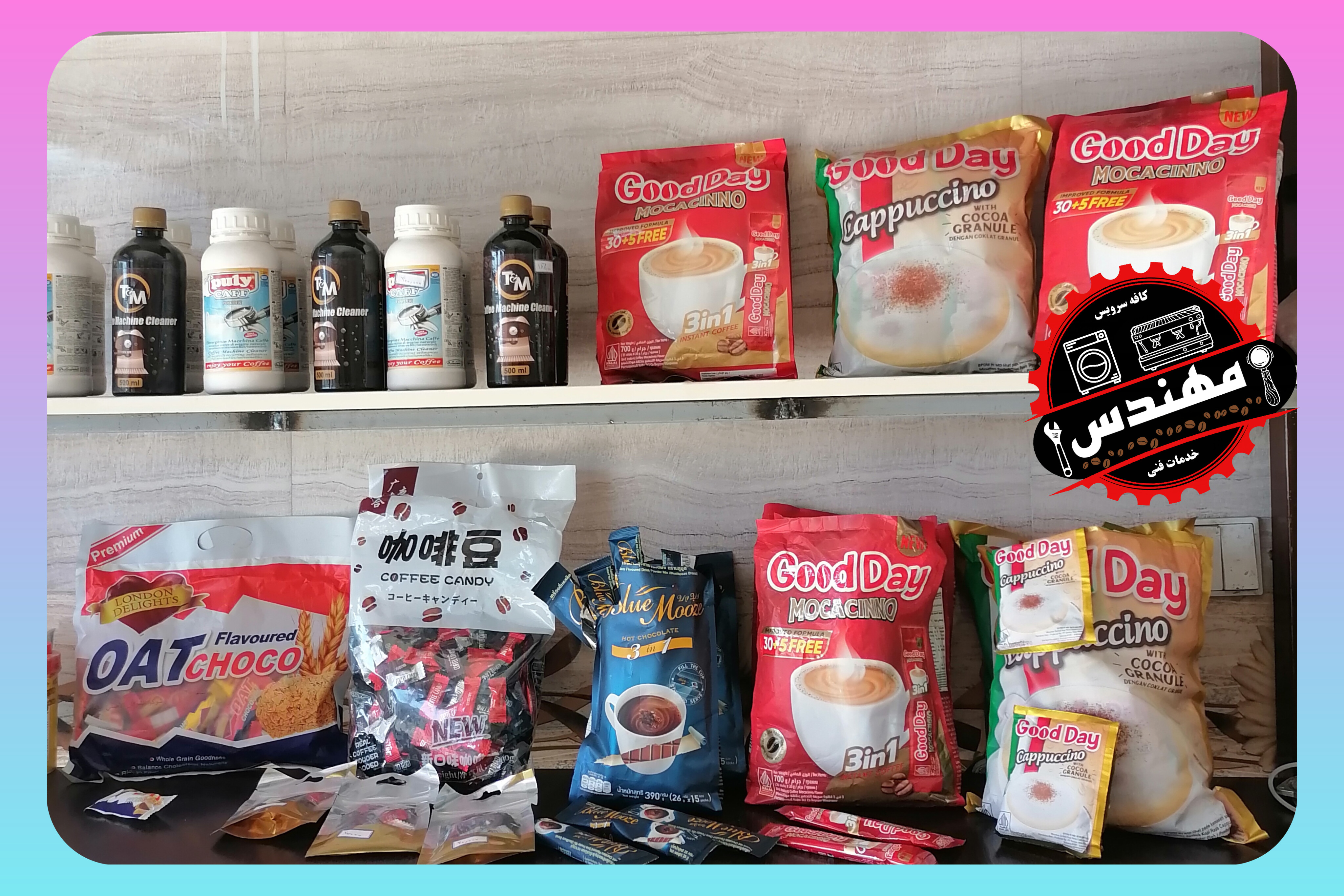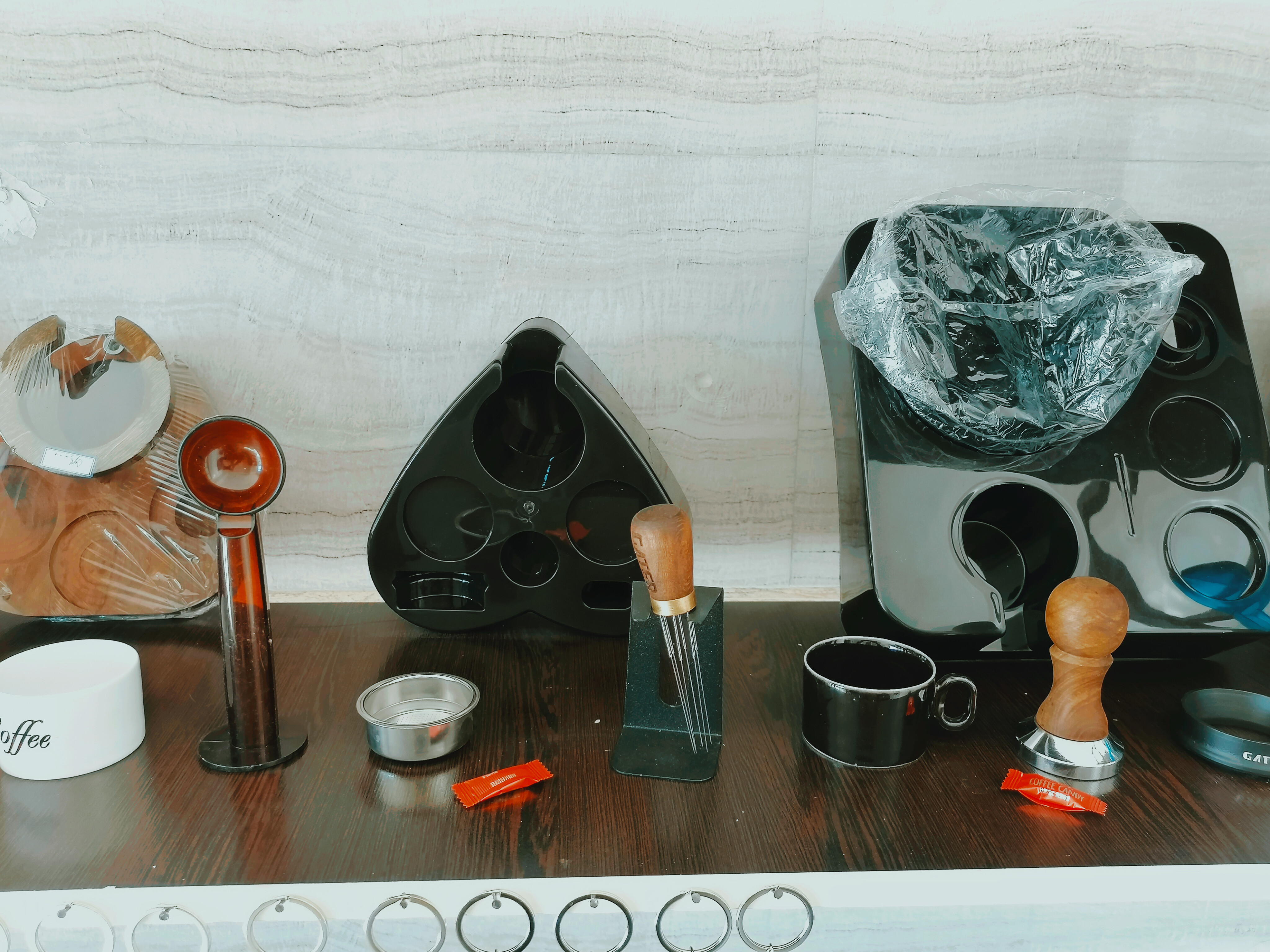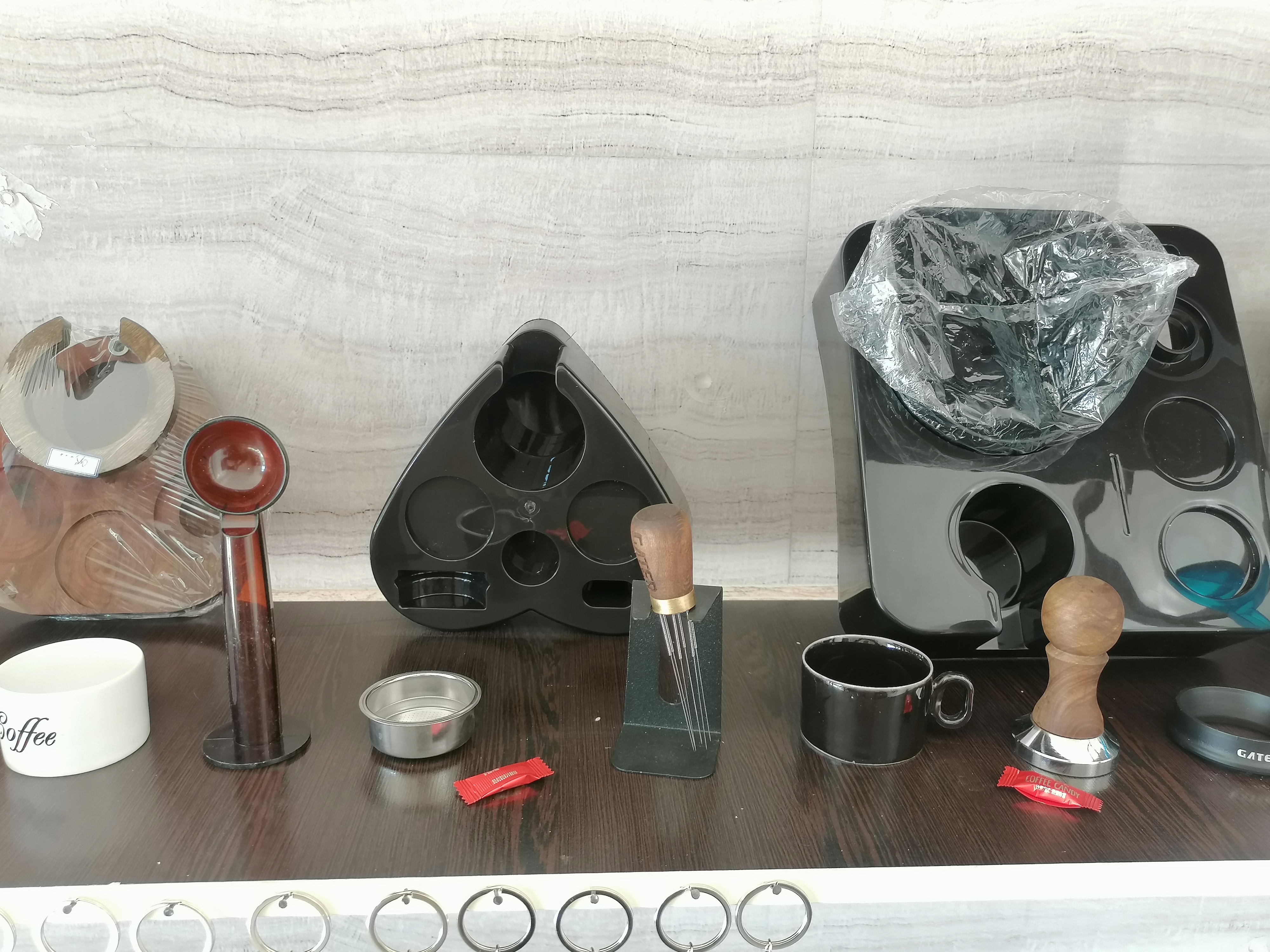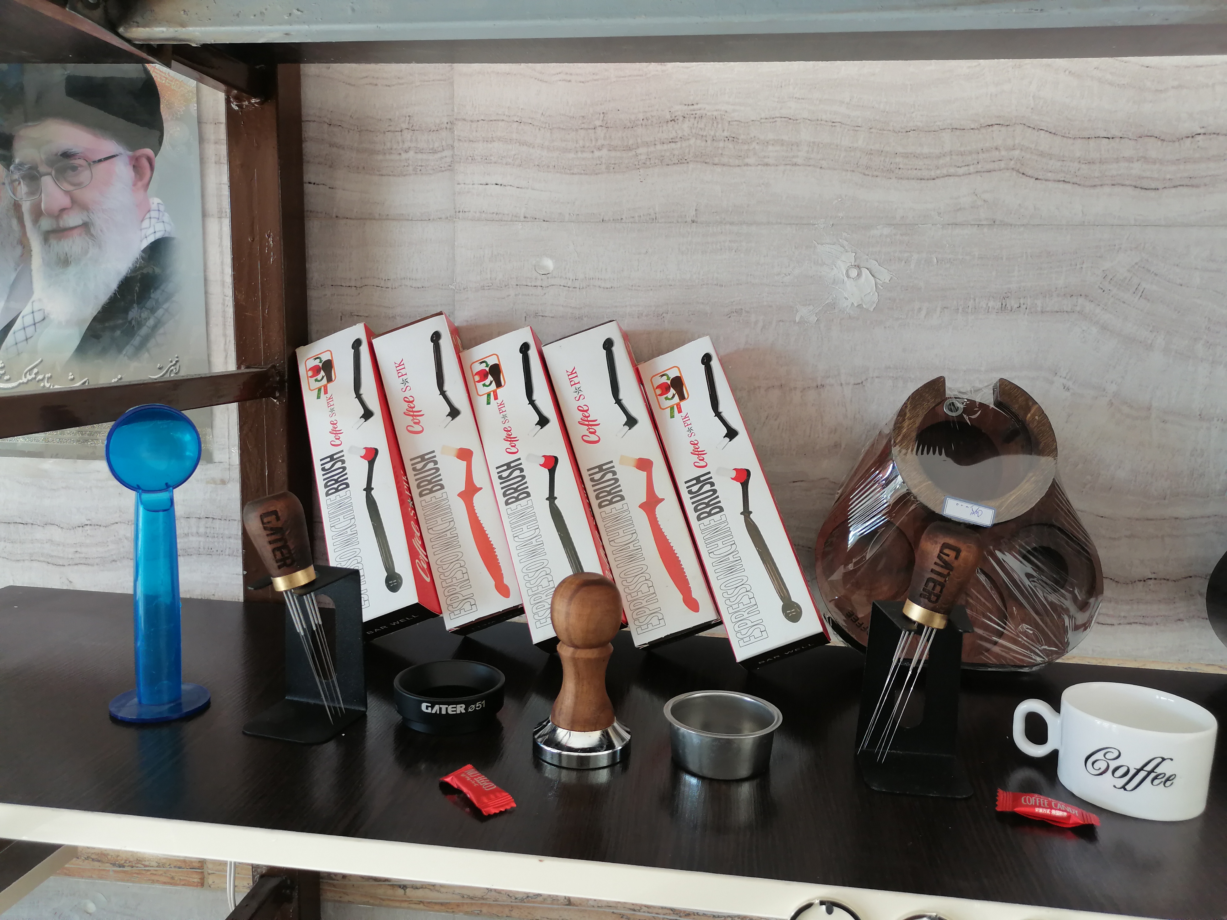 شامل: (تمپر فلزی 51، تمپر دسته چوبی51، فانل گتر سایز51، لولر گتر سایز51، نیدل لاکی آبنباتی، نیدل دسته چوبی گتر، فرچه تنظیف، پاک اسکرین51 لواک، جاکلیدی اکسسوری قهوه، استند قلبی لاکی51 و چوبی53، استند لاکی مربعی ناک باکس دار51، استند چوبی مستطیلی51، فنجان قهوه، فنجان و نعلبکی لاته خوری، بسکت تک و دوبل غیر تحت فشار 51، لیوان اسموتی شیشه ای روکش چرمی، پیچر 600میلی استیل و هفت رنگ)